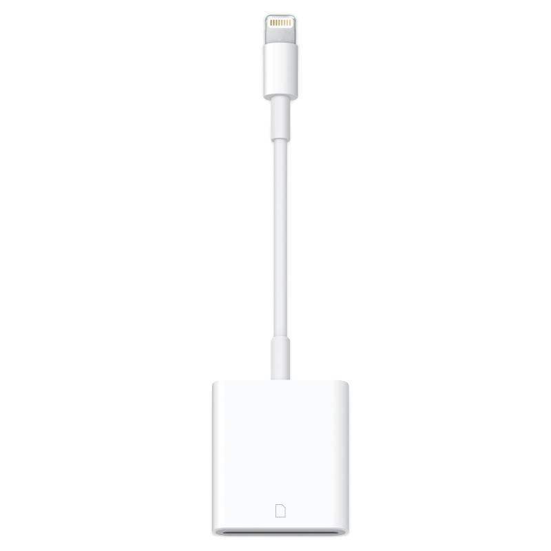 El adaptador de conector Lightning a lector de tarjetas SD para cámaras es compatible con los formatos de imagen estándar, como JPEG y RAW, y con los formatos de vídeo de resolución SD y HD, como H.264 y MPEG‑4. Transfiere datos a velocidades de hasta USB 3 en los iPad Pro de 10,5 y 12,9 pulgadas (1.ª y 2.ª generación) y de hasta USB 2 en el iPad Pro de 9,7 pulgadas y los demás modelos de iPad y iPhone.*
